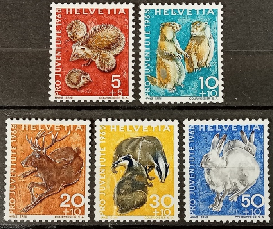 1965 Einheimische Wildtiere Igel-Alpenmurmeltiere-Edelhirsch-Dachse-Schneehase