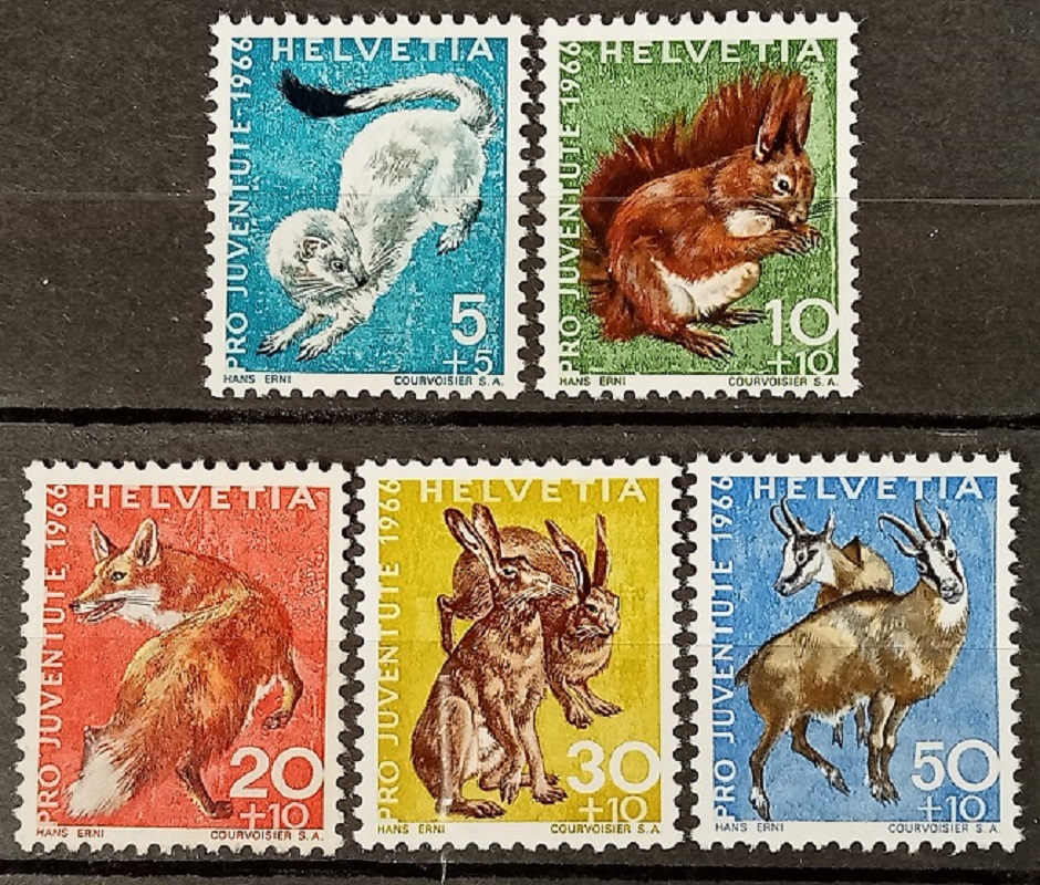 1966 Einheimische Wildtiere Hermelin-Eichhörnchen-Fuchs-Feldhasen-Gemsen