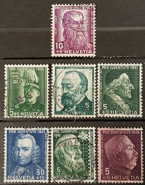 1937-1948 Bildnisse Niklaus von der Flüe, General Hans Herzog, Gottfried Keller, Joh. Kaspar Lavater, Daniel Jeanrichard, Nikl. Riggenbach, General Ulrich Wille