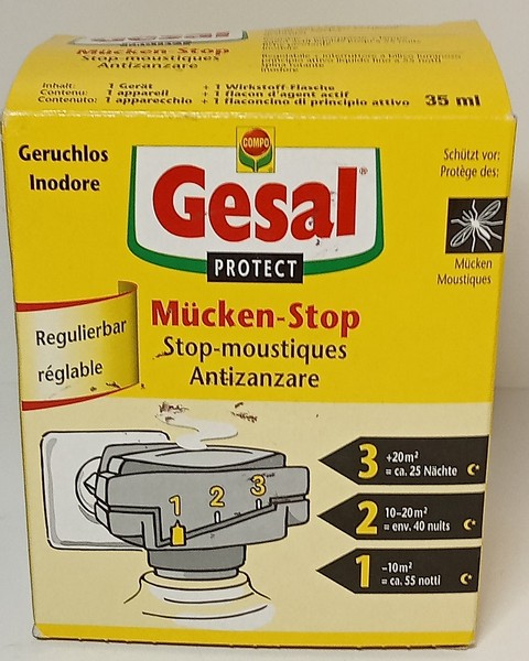 Regulierbar, Kipp-Leuchtschalter. Enthält 1 x Gerät + 1 x Winrkstoff für bis zu 55 Nächte, geruchlos. Vorrat = 2 Stück