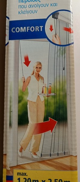 Insect Stop Comfort Lamellentür mit Seilzug zum einhändig auf-und zuziehen. Montage ohne Bohren möglich. Spurlos ablösbar dank Tesa-Powerstrips Vorrat = 1 Stück. ABHOLPREIS - KEIN VERSAND
