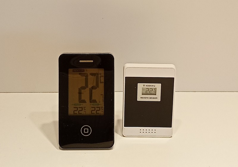 Batteriebetrieb. Messbereich innen -9.9°C bis +50°C, aussen -50°C bis +70°C. Kabellos. Frequenz 433Mhz.
