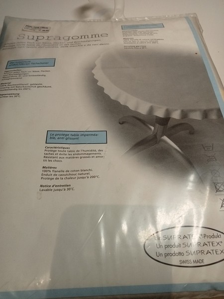 Tischschoner schützt jeden Tisch vor Nässe, Flecken und Beschädigungen. Wasserdicht, öl-und fettbeständig, schlaghemmend. 100% Baumwollflanell gebleicht, Einseitig mit Naturkautschuk geschäumt. Hitzebeständig bis 200 C°. Waschbar bis 30° C. Vorrat = 1 Stück