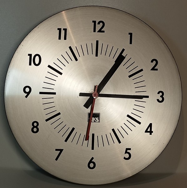 Moderne Wanduhr aus Edelstahl. Durchmesser 30 cm. Quartzwerk. Ausstellungsstück mit einigen kleinen, kaum sichtbaren Kratzern. Vorrat = 1 Stück. SPEZIALPREIS (statt 89.80)