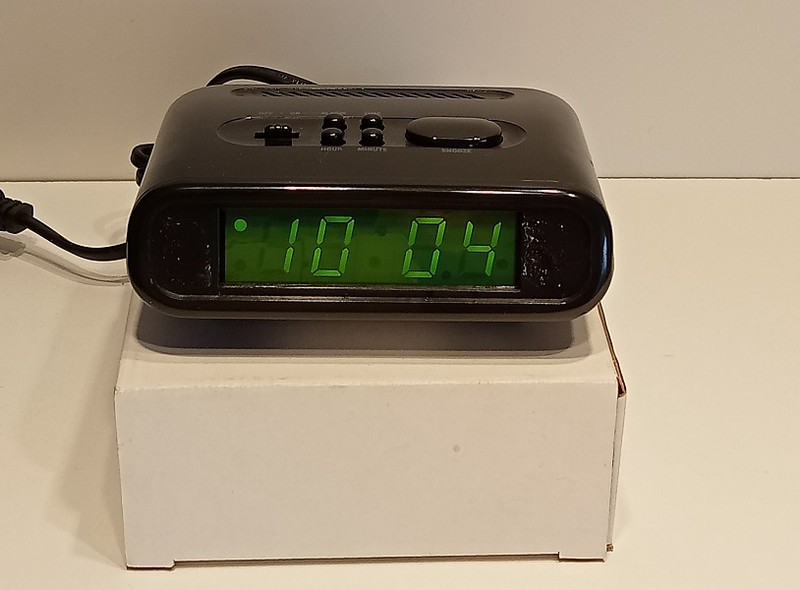 Netzbetrieb. Elektronische LED Digital Weckung. Schlummertaste, bis 5 Weckwiederholungen möglich. Netzausfallüberbrückung. Grösse 12 x 5 cm.